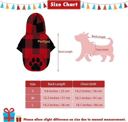 Stylish Red and Black Plaid Dog Hoodie with Hat - Cozy Pet Sweater for Dogs and Cats with Footprint Pocket - Warm, Soft, and Breathable - Large Size