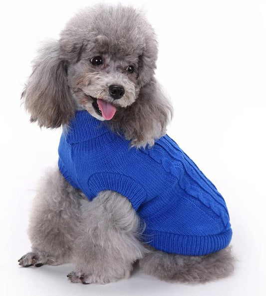 Cozy Blue Turtleneck Dog Sweater - Classic Knit Pullover for Small Dogs and Cats, Perfect Winter Apparel!