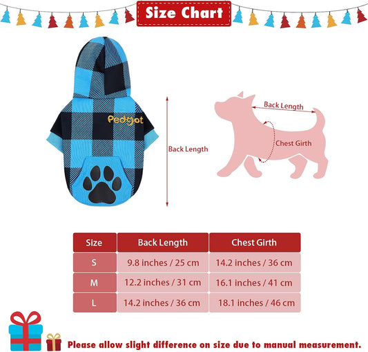 Stylish Blue and Black Plaid Dog Hoodie with Hat - Cozy, Soft, and Breathable Pet Sweater for Dogs and Cats with Pocket and Footprint Patterns, Medium Size