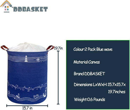 • DDBASKE 2-Pack Large Collapsible Drawstring Laundry Basket with Lid - Stylish Toy Storage Bin for Kids - Perfect Clothes Hamper with Handles (Blue Wave)
